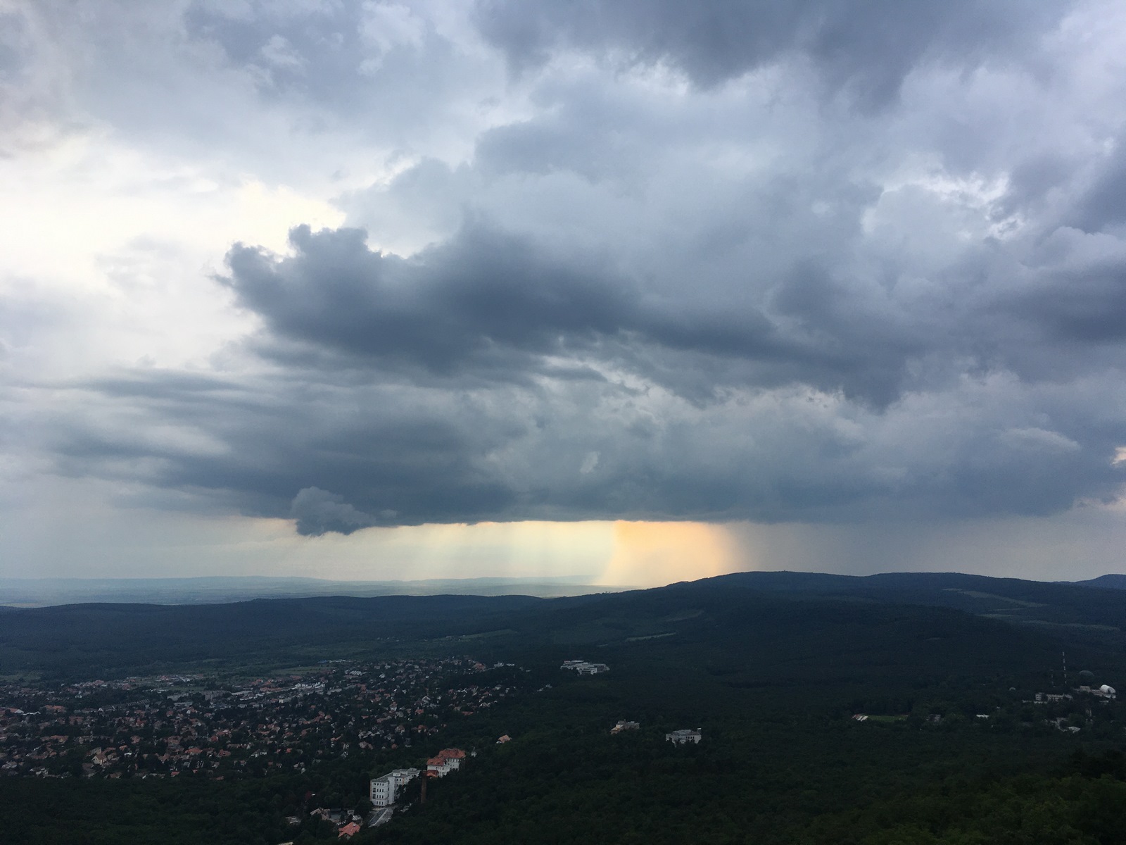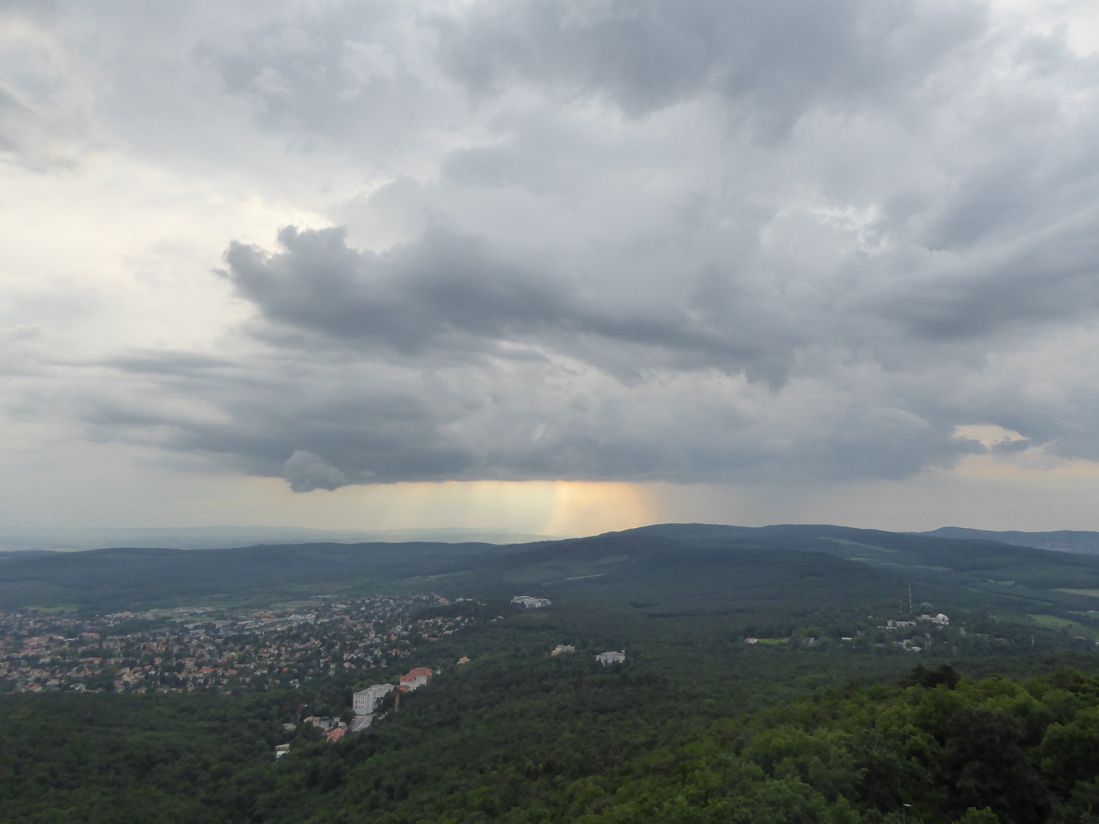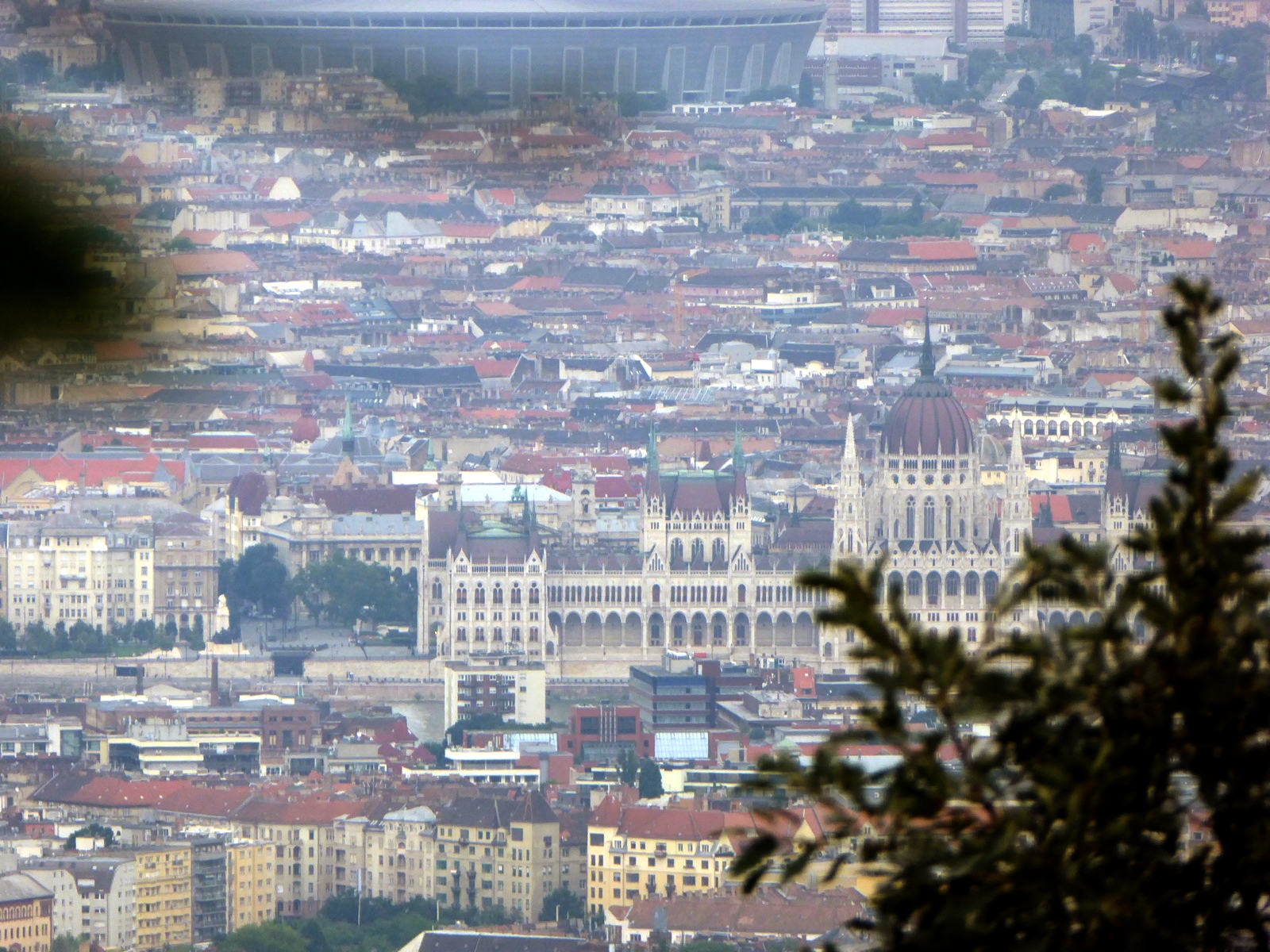 Un beau panorama s’offre à vous, plusieurs quartiers de Budapest, dont le parlement sont alors visibles. Par beau temps, il est même possible d’observer les Matra (montagnes hongroises… présentes sur le drapeau slovaque !). Oui, Matra n’est pas seulement un constructeur de super voitures, c’est aussi une chaîne montagneuse située à 80 km de Budapest… Mais comme vous le voyez, vous ne les voyez pas ! J’avais prévenu : uniquement par beau temps. L’orage a grondé à notre désespoir… Mais on a eu le temps de se réfugier dans le bus : direction d’autres balades en ville, on n’en pas fini avec Budapest. A bientôt pour la suite.